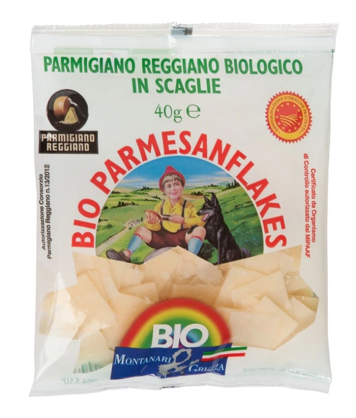 Bio Montanari & Gruzza Parmigiano Reggiano Parmesanflakes D.O.P., 40 G Packung – Laktosefrei –