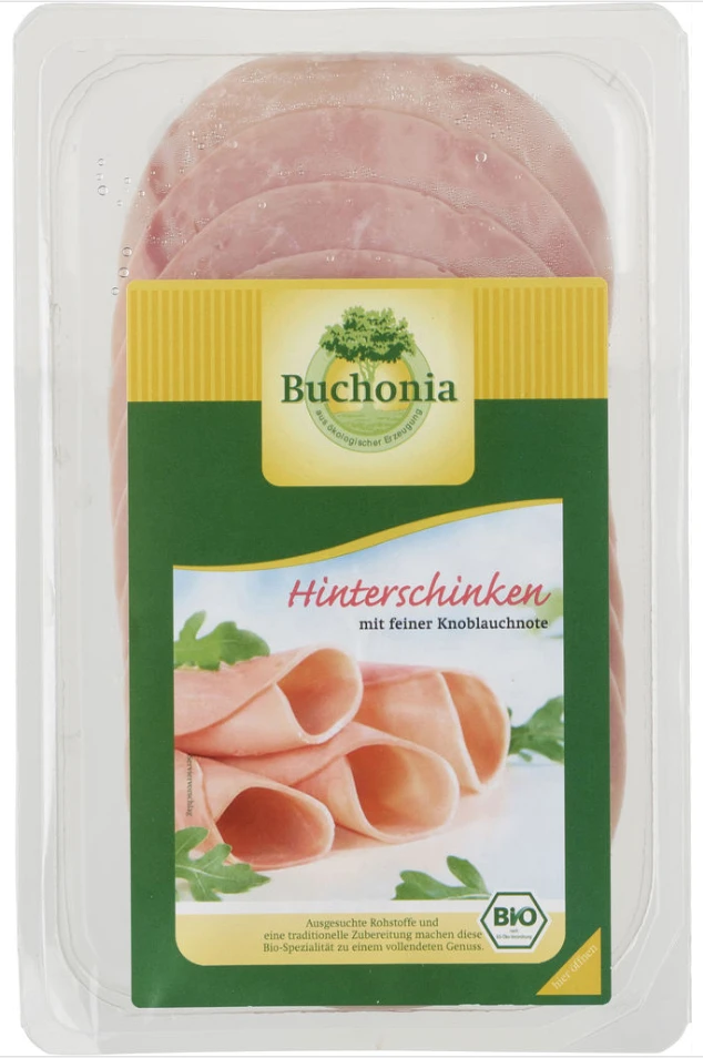 Bereichere deine Küche mit dem Buchonia Bio Hinterschinken, der in feinen Scheiben für ein außergewöhnliches Geschmackserlebnis sorgt. Dieser exzellente Bio-Schinken, hergestellt nach strengsten Qualitätsstandards, verleiht jedem Gericht eine Note von Luxus und Raffinesse. Ob als Hauptakteur in deinem Frühstücksteller oder als geschmackvolle Komponente in deinen Sandwichkreationen – dieser Schinken überzeugt durch seinen reinen und unverfälschten Geschmack. Genieße die Kombination aus Tradition, Qualität und purer Geschmacksvielfalt, die Buchonia in jedem Bissen bietet.