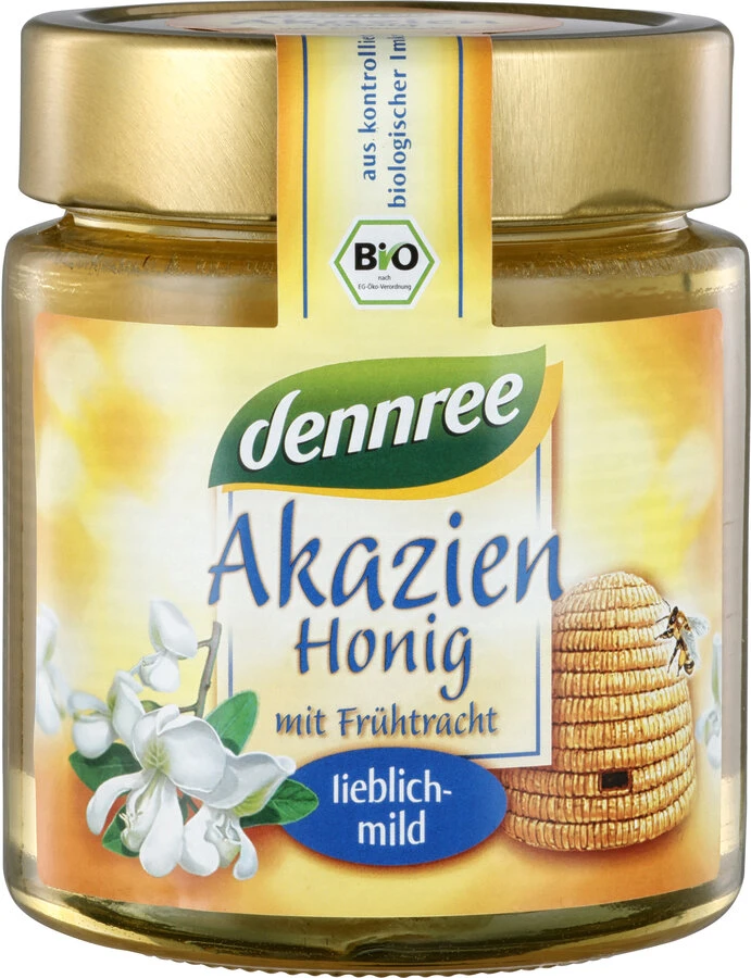 Bringe mit dem dennree Akazienhonig aus unserem frischen Sortiment eine lieblich-milde Süße in dein Leben. Dieser feine, zartfließende Honig ist nicht nur bei Kindern ein Hit, sondern verzaubert auch Desserts, Gebäck, Milchspeisen und Getränke. Sein dezentes Aroma macht ihn zum perfekten Begleiter von deinem Frühstücksbrötchen bis hin zum entspannenden Gute-Nacht-Tee. Gönn dir diesen vielseitigen, natürlichen Genuss für jeden Moment.