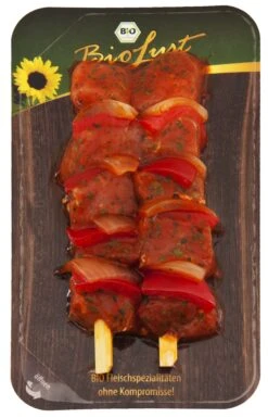 BioLust Bio Schweinefleisch Fleischspieß Mit Zwiebel Und Paprika Mariniert, 2 Stück, Ca. 300 Gr