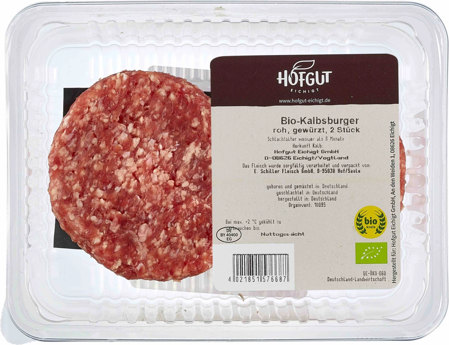 Hofgut Eichigt Bio Kalbsburger Roh, 250 Gr Schale