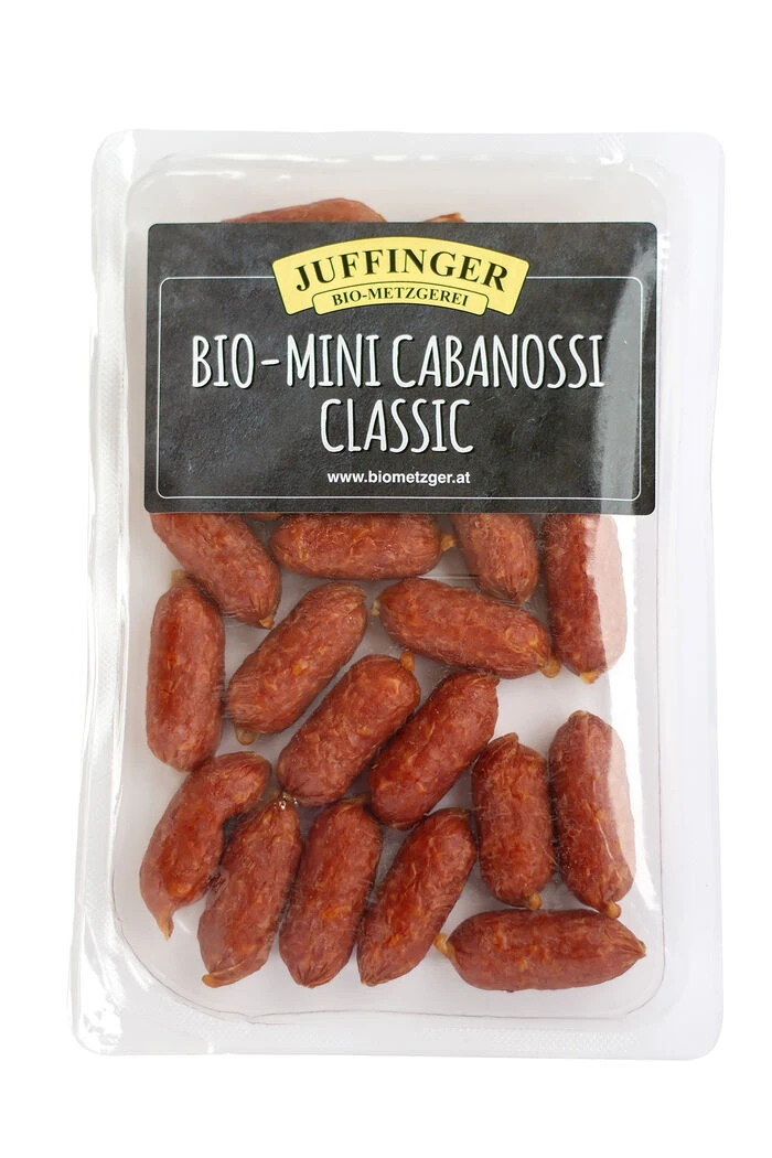 Die Juffinger Mini Cabanossi sind ein echter Gaumenschmaus für alle, die den besonderen Geschmack von feiner Rohwurst zu schätzen wissen. Mit ihrer einzigartigen Würze und der hochwertigen Qualität bieten sie ein unvergleichliches Geschmackserlebnis. Ideal für den kleinen Hunger zwischendurch oder als Highlight auf jeder Partyplatte.
