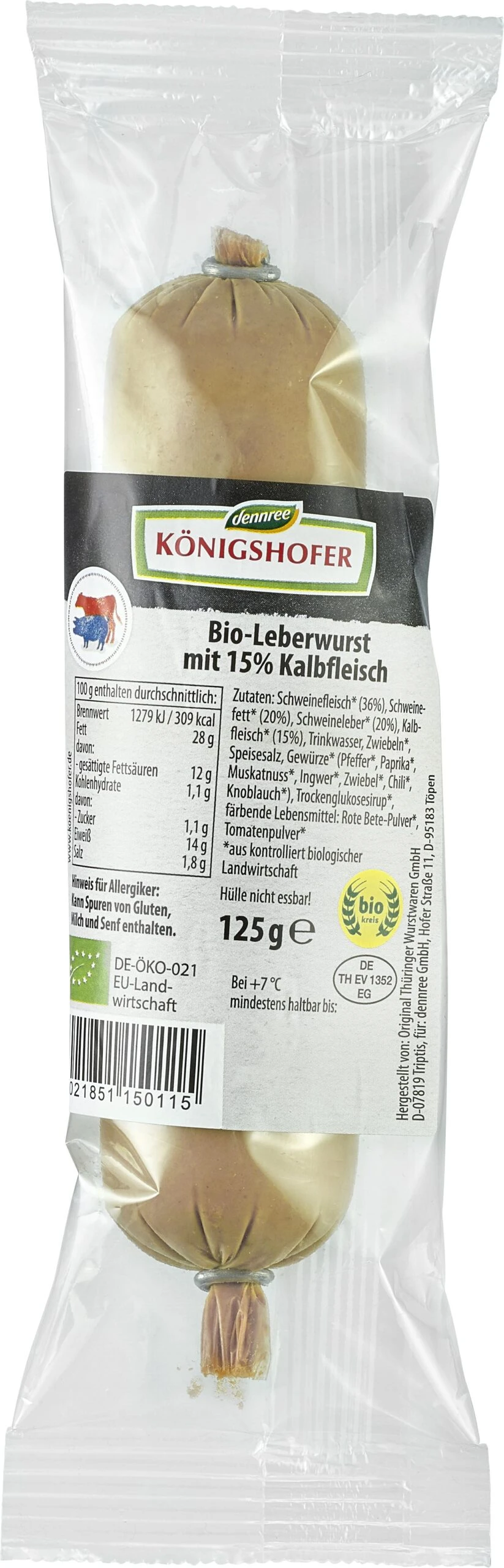 Königshofer Bio Leberwurst Mit 15% Kalbfleisch, 125 Gr Stück
