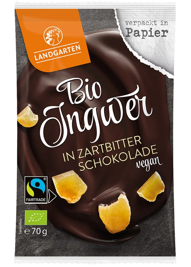 Landgarten Ingwer In Zartbitter-Schokolade, 70 Gr