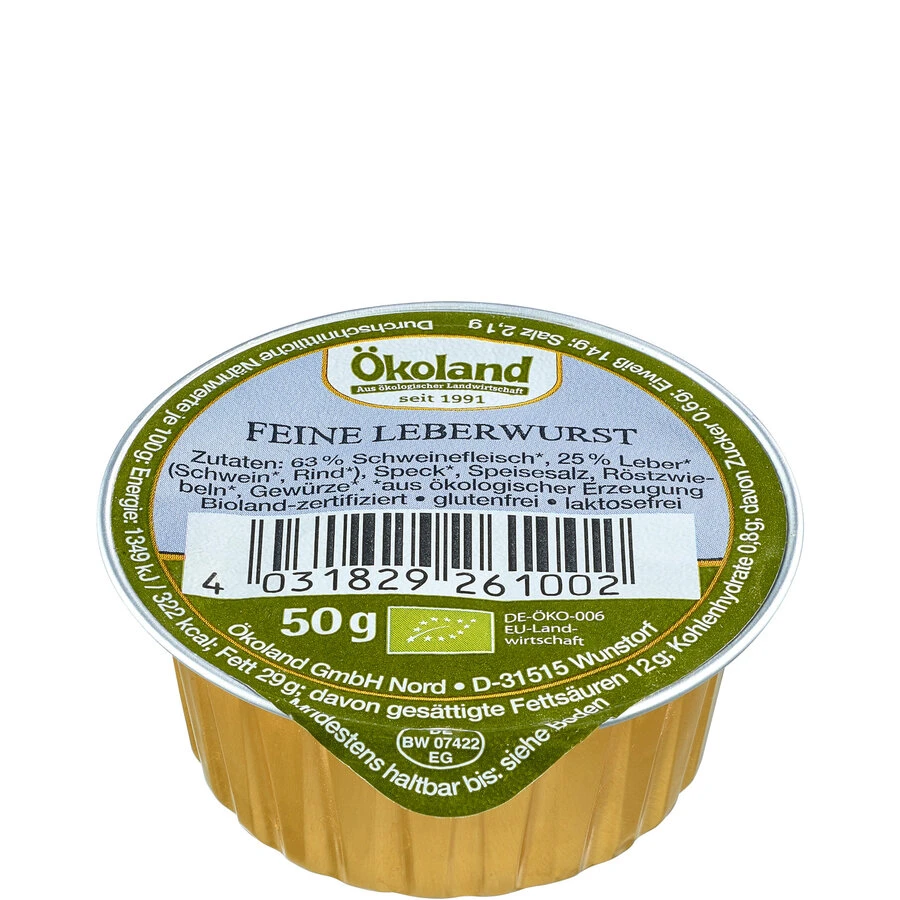 Ökoland Feine Leberwurst, 50 Gr Schale