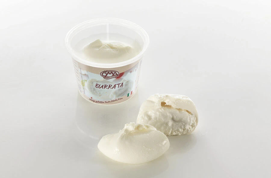 Verwöhne deinen Gaumen mit der ÖMA Burrata, einem italienischen Käsegenuss, der jede Mahlzeit in ein kulinarisches Erlebnis verwandelt. Diese Spezialität, ein Juwel unter den Filata Käsen, besticht durch ihre cremige Füllung aus Sahne und Käseteig, umhüllt von einer zarten Beutelform. Ihre einzigartige Textur und der vollmundige Geschmack machen sie zur idealen Wahl für Liebhaber feiner Käsesorten. Ob als Herzstück einer edlen Vorspeisenplatte, kombiniert mit frischen Tomaten und Basilikum oder einfach pur genossen – die Burrata verspricht ein unvergleichliches Geschmackserlebnis.
