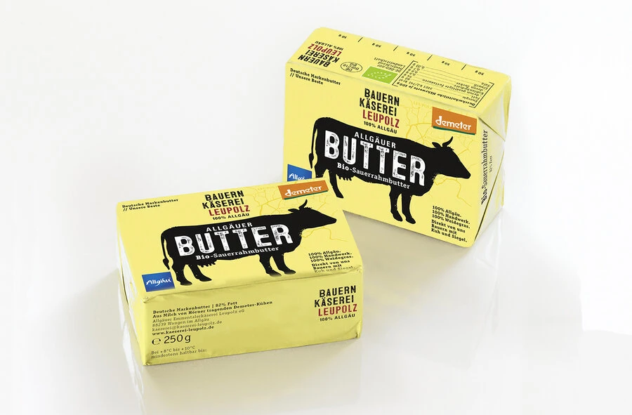 Genieße den authentischen Geschmack der Allgäuer Tradition mit der ÖMA Sauerrahmbutter, hergestellt aus dem Rahm von Demeter-zertifizierten Kühen. Diese Butter, ein Symbol für Reinheit und Qualität, veredelt jede Mahlzeit durch ihren frischen und cremigen Charakter. Ausgezeichnet mit dem Prädikat Deutsche Markenbutter, verspricht sie höchste Qualität und Genuss. Ideal, um deinen Lieblingsspeisen eine unverwechselbare Note zu verleihen und den natürlichen Geschmack zu betonen.