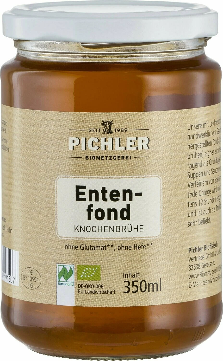Tauchen du ein in die Welt der gehobenen Küche mit dem Pichler Bio Entenfond. Dieser sorgfältig zubereitete Fond, hergestellt aus den besten Bio-Fleischknochen und Gemüse aus unserem frischen Sortiment, garantiert ein kulinarisches Erlebnis ohne den Einsatz von Geschmacksverstärkern oder Konservierungsstoffen. Perfekt für die Verfeinerung deiner Lieblingssaucen und Suppen, bietet er eine geschmackvolle Basis, die deine Gerichte auf ein neues Niveau hebt. Ideal für alle, die puren Geschmack und authentische Qualität schätzen.