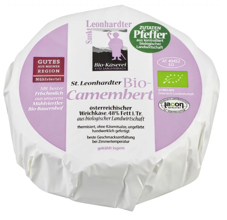 St. Leonhardter Biokäserei Camembert Mit Pfeffer, Ca. 180 Gr , Mind. 48%